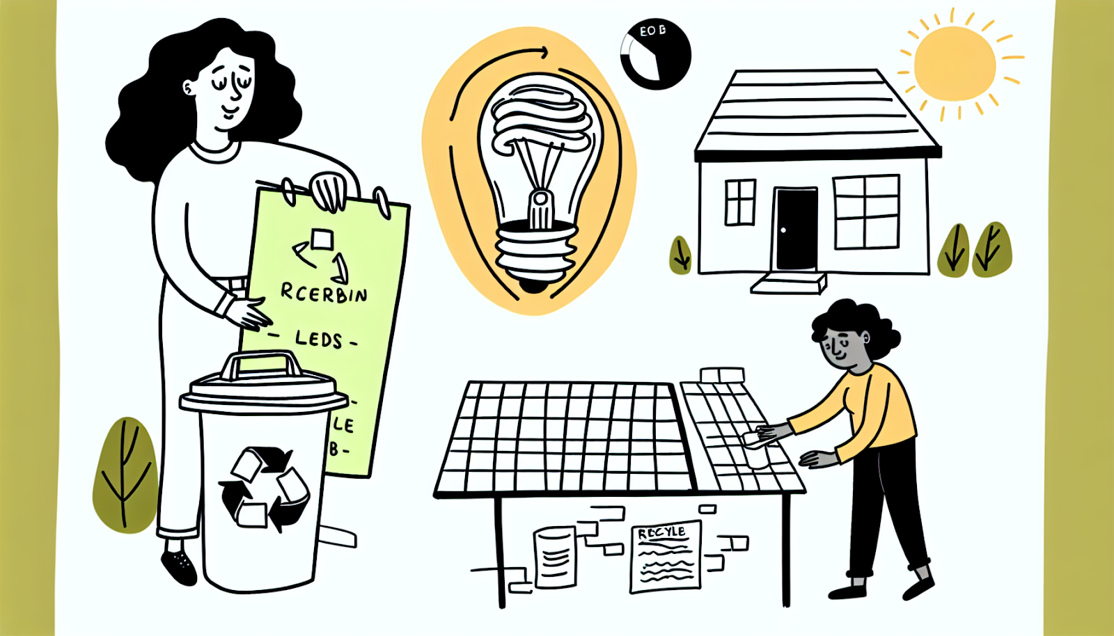 • 回收廢品:妥善分類並回收紙張、玻璃、金屬及塑料等廢品。